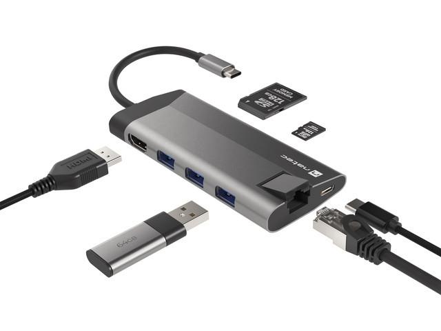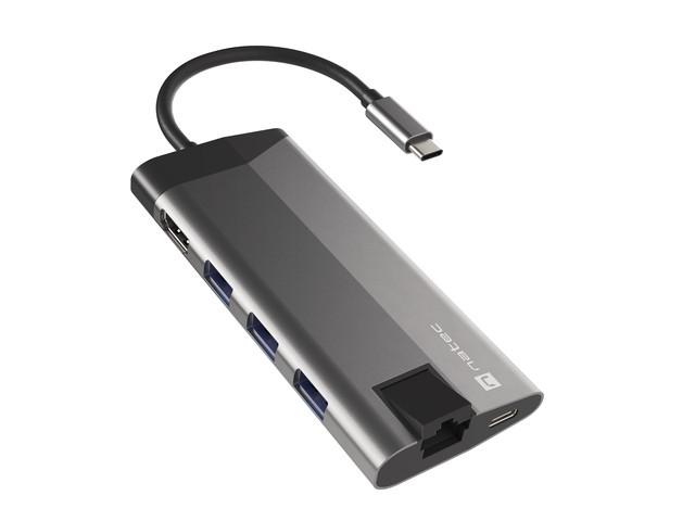 Адаптер Natec Fowler Plus Multiport Adapter 8 in 1, USB 3.0 HUB, HDMI 4K, USB-C PD, RJ45, SD, Micro