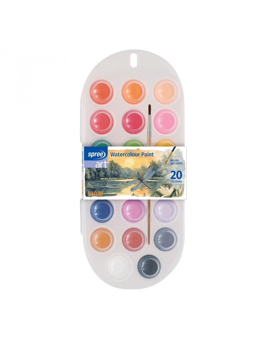 Добавете цвят и въображение към всяка творческа идея с акварелните бои Spree! Този комплект включва 20 ярки и наситени цвята, които се смесват лесно и позволяват създаването на плавни преливки и фини детайли. Подходящи са както за начинаещи художници, така и за ученици и хоби творци.