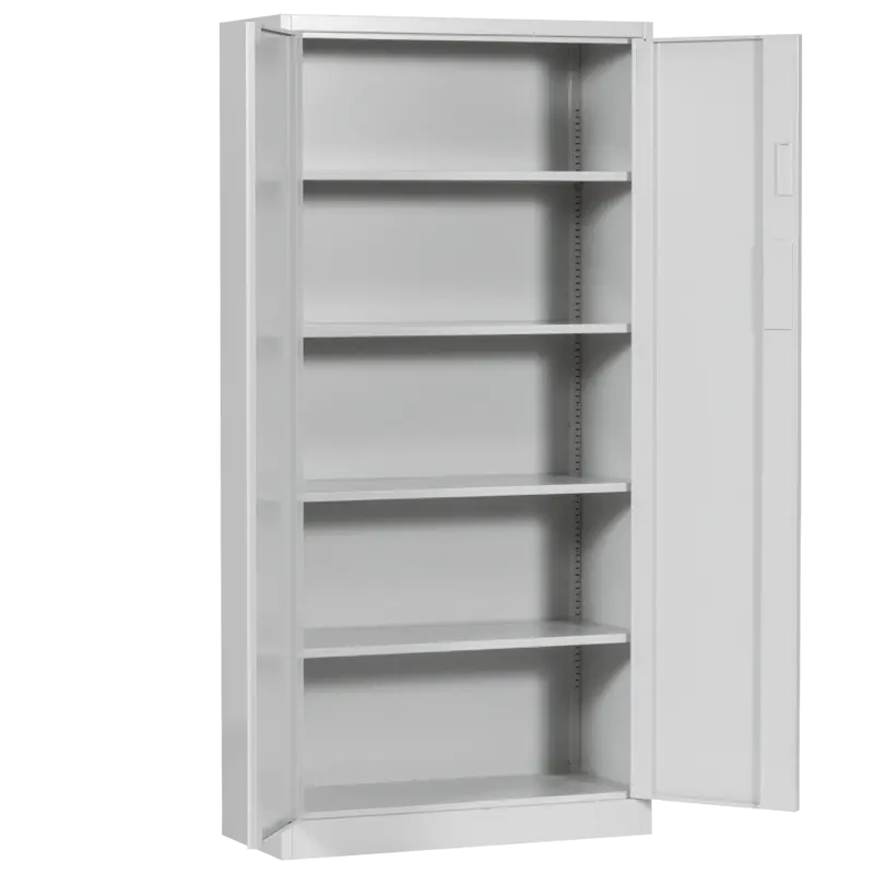 Архивен шкаф BTL EK с 5 отделения 185х90х40 см е голям метален шкаф за документи с плътни врати и 4 рафта с регулируема височина. Шкафът е с електронно заключване и се отключва чрез парола за по-голяма сигурност на важната документация.