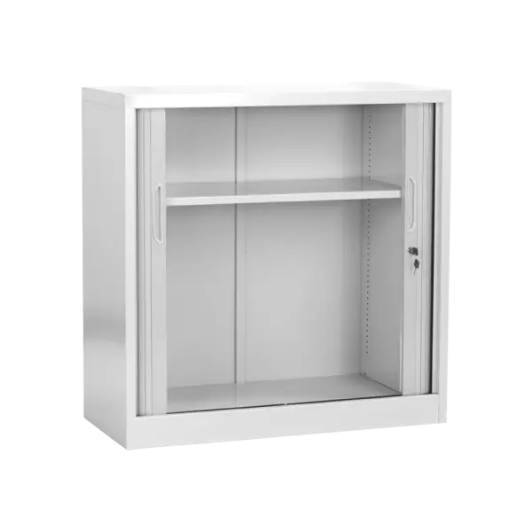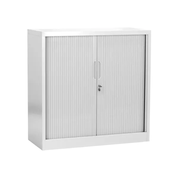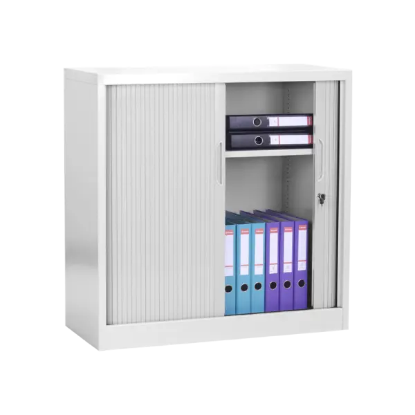 Архивният шкаф BTL J разполага с две ролетни врати и рафтове с регулируема височина.