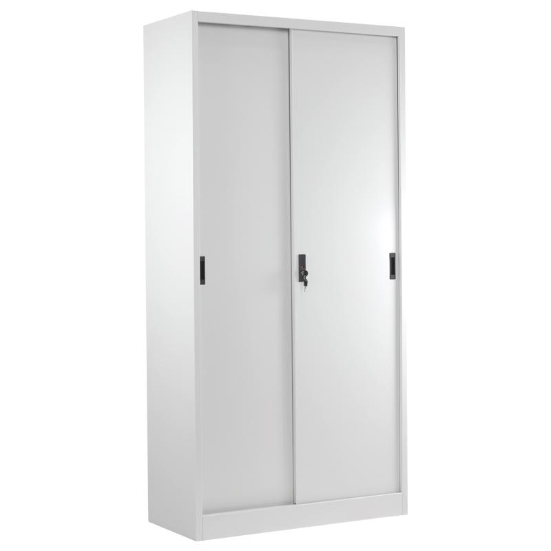 Архивен шкаф BTL J с 5 отделения 185х90х40 см е метален шкаф за документи с плъзгащи врати със заключване. Той разполага с 4 рафта с регулируема височина и товароносимост до 40 кг за всеки.