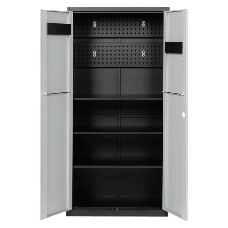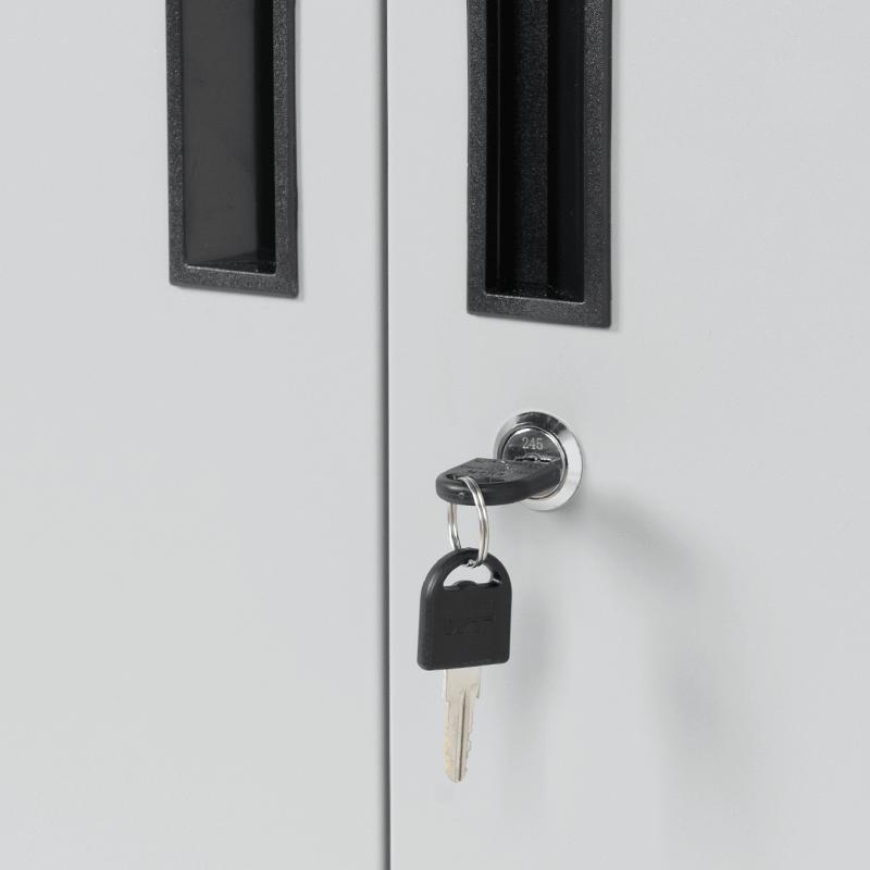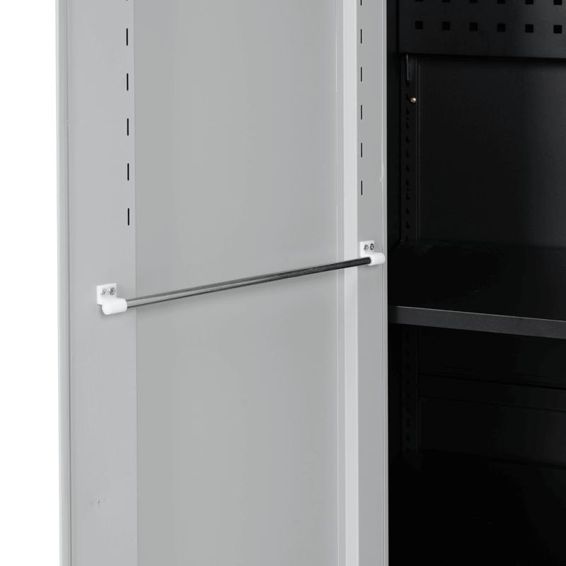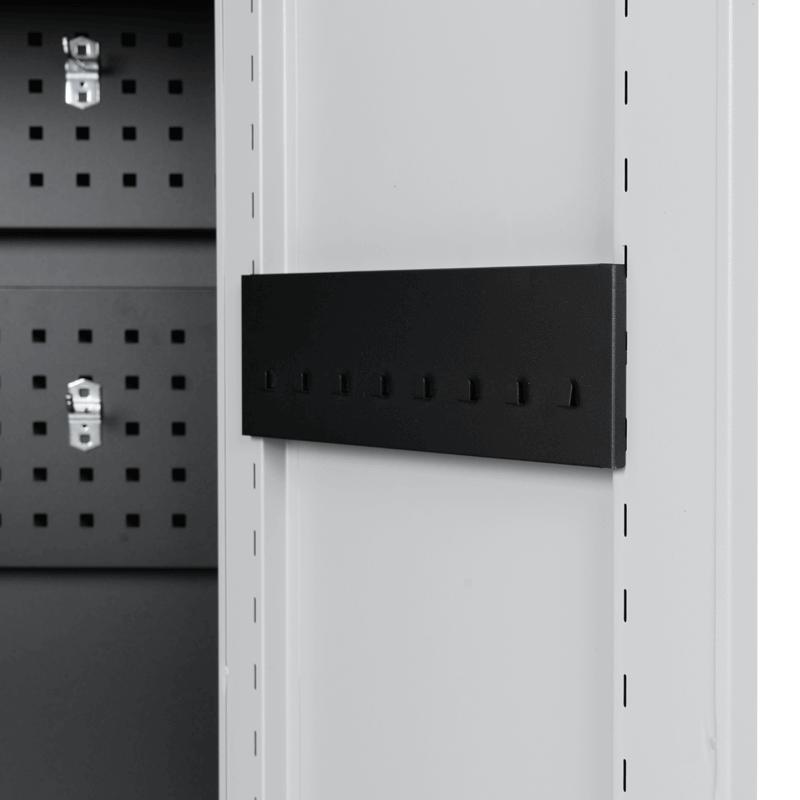 Архивен шкаф BTL LS с 6 отделения 185х90х45 см предлага практично и надеждно решение за подреждане на инструменти в работна среда. Изработен е от прахово боядисан метал и разполага с 3 регулируеми рафта, всеки с товароносимост до 40 кг. От вътрешната страна на вратите има куки за окачване на инструменти и по един лост на всяка врата, подходящ за работни кърпи. Във вътрешното отделение са монтирани още 4 куки, с възможност за добавяне на допълнителни (не са включени в комплекта). Конструкцията позволява лесна организация и бърз достъп до всичко необходимо.