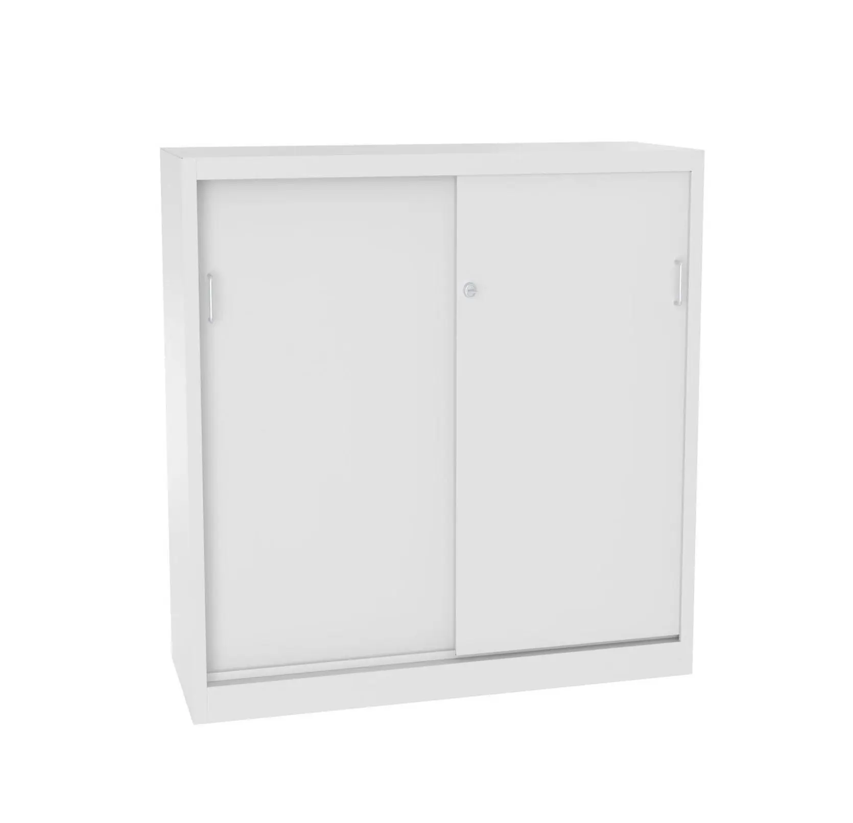 Архивният шкаф FRT с 3 отделения и с плъзгащи врати с уникално заключване за всеки шкаф. Притежава регулируеми рафтове по височина, всеки с товароносимост 60 кг.