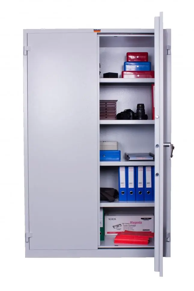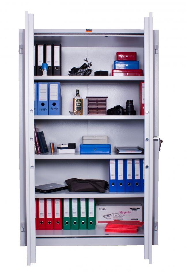 Архивният шкаф PMT 195x125x52см притежава пет отделения и две врати с тристранно заключване. Шкафът гарантира съхранението на документи и ценности от пожар и взом, благодарение на топлоизолиращия материал, с които е запълнено пространството между вътрешната и външна стена.