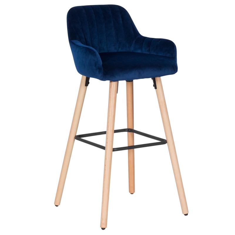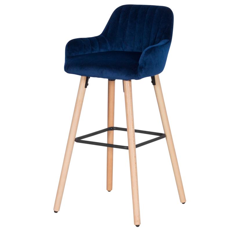 АЛЕКСА е висок бар стол с удобна седалка, наподобяваща кресло. Моделът е изработен с мека дамаска и здрави крака от бук.