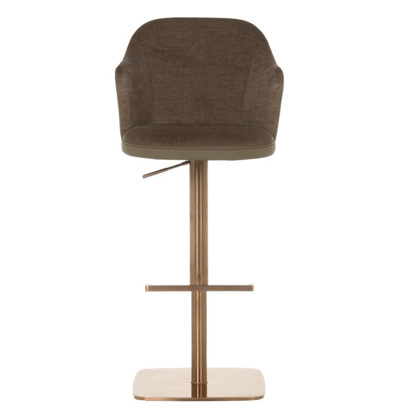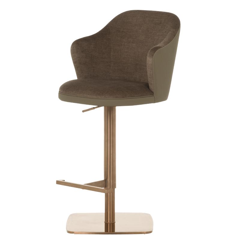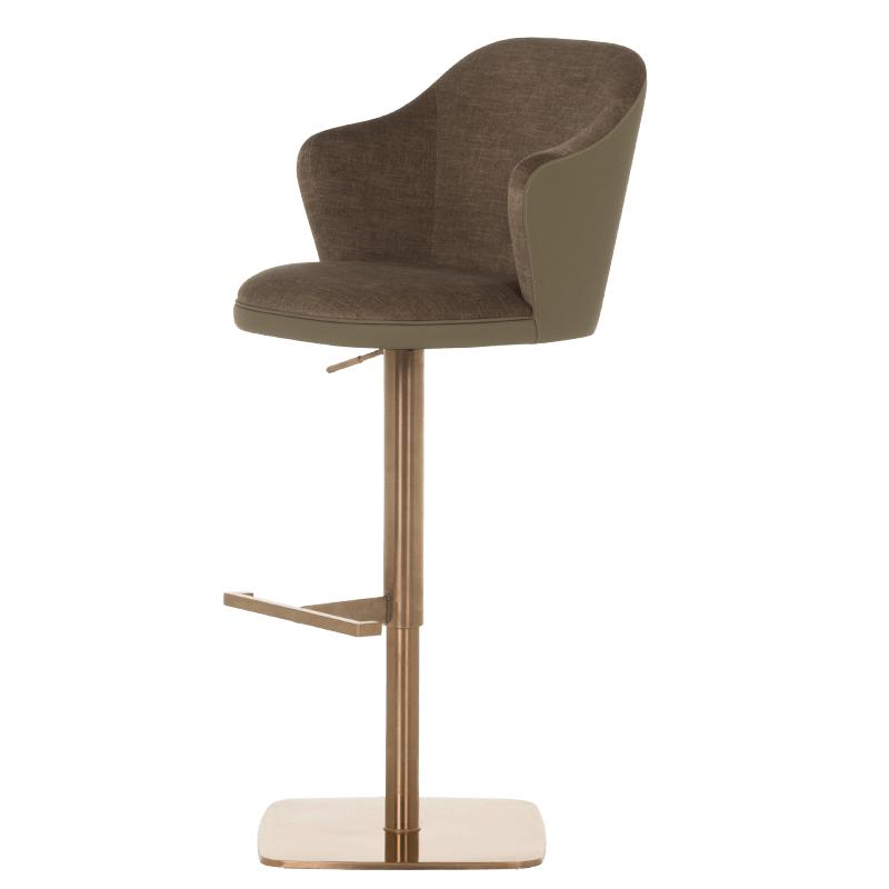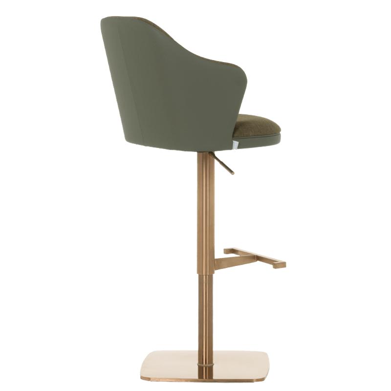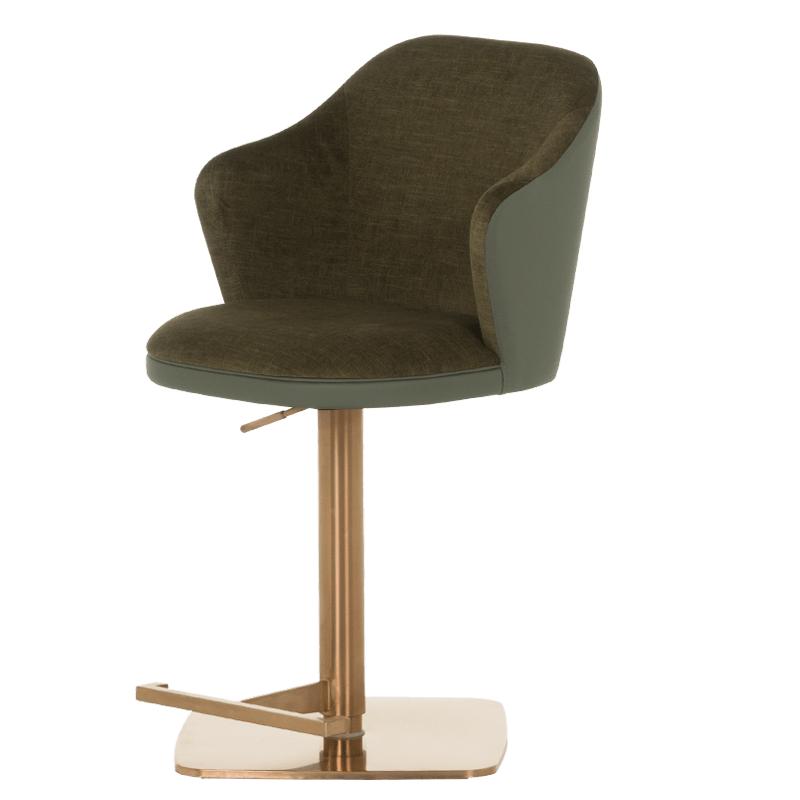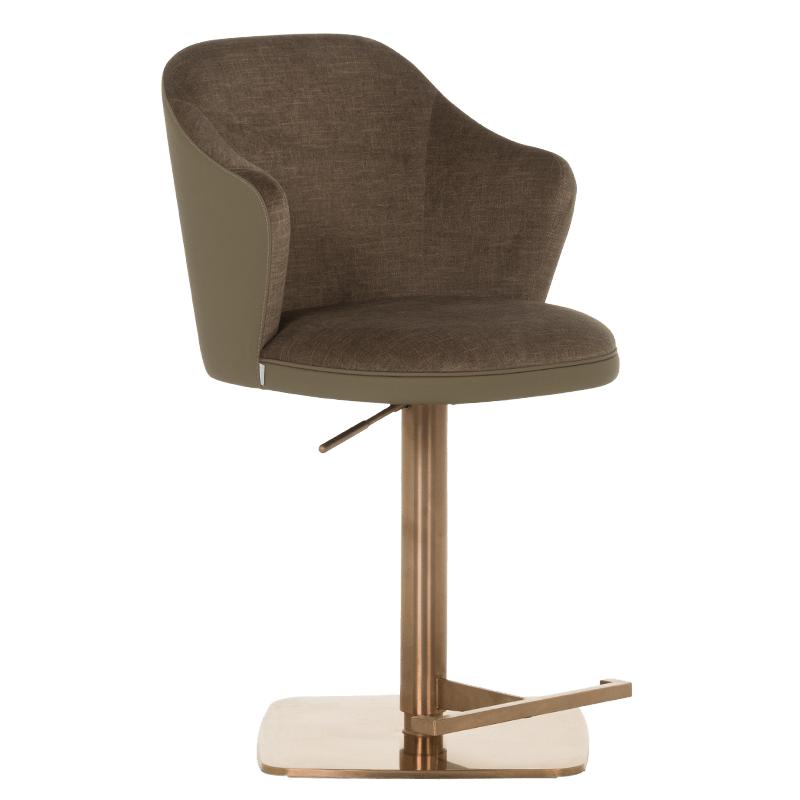 Бар столът БЛАГО е съвършеното въплъщение на лукс и комфорт, съчетавайки модерен дизайн с функционалност. Тапициран във висококачествена еко кожа, той предоставя несравнима мекота и елегантност, създавайки изискана атмосфера. Основата му е изработена от иноксова стомана с луксозно полирано покритие със златист финиш, което придава както забележителна издръжливост, така и изискан блясък. Подлакътниците се преливат плавно с облегалката, създавайки стилна извивка, която подчертава хармоничния и елегантен силует на стола. С въртене на 360 градуса и регулируема височина, бар столът предлага както функционалност, така и изтънчен визуален акцент за всеки интериор, където комфортът и стилът се преплитат в съвършена хармония.