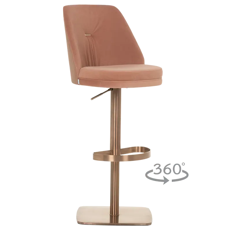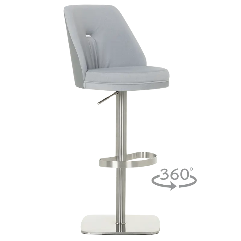 Бар стол ХЕЛЕНА съчетава стил и комфорт с модерна функционалност. Тапициран във висококачествена дамска и еко кожа с изтънчени цветове, този стол ще се впише перфектно във всеки съвременен интериор. Основата от полирана неръждаема стомана осигурява стабилност и издръжливост, докато функцията за въртене на 360 градуса добавя допълнително удобство. Столът разполага с газов амортисьор, позволяващ лесно регулиране на височината за персонализиран комфорт, и издържа натоварване до 120 килограма. Подходящ за барове, кухни или дневни пространства, този бар стол е перфектната комбинация от стил и практичност.
