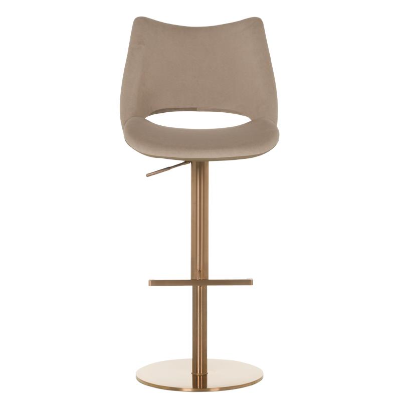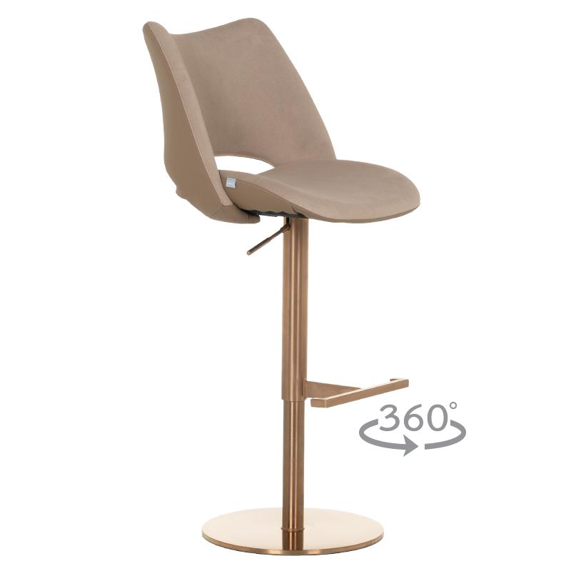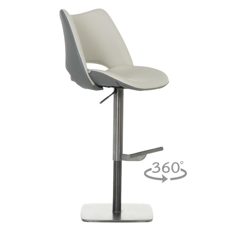 Бар стол МАРГИ съчетава стил и комфорт с модерна функционалност. Тапициран в луксозна еко кожа с изтънчени цветове, този стол ще се впише перфектно във всеки съвременен интериор. Основата от полирана неръждаема стомана осигурява стабилност и издръжливост, докато функцията за въртене на 360 градуса добавя допълнително удобство. Столът разполага с газов амортисьор, позволяващ лесно регулиране на височината за персонализиран комфорт, и издържа натоварване до 120 килограма. Подходящ за барове, кухни или дневни пространства, този бар стол е перфектната комбинация от стил и практичност.