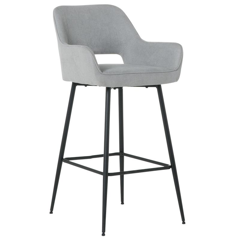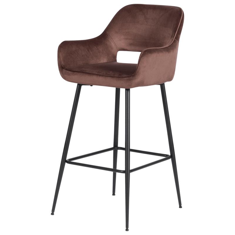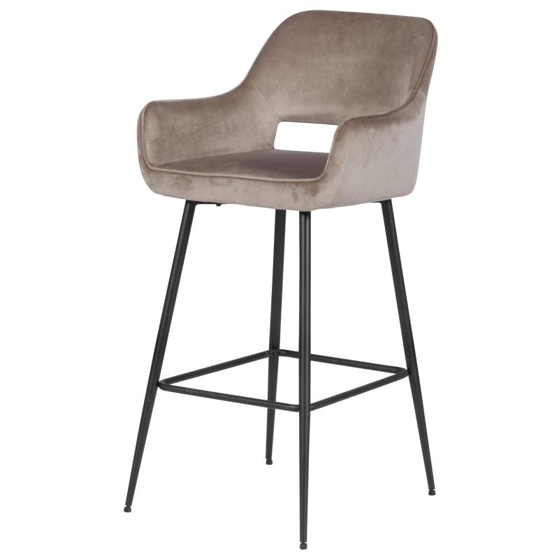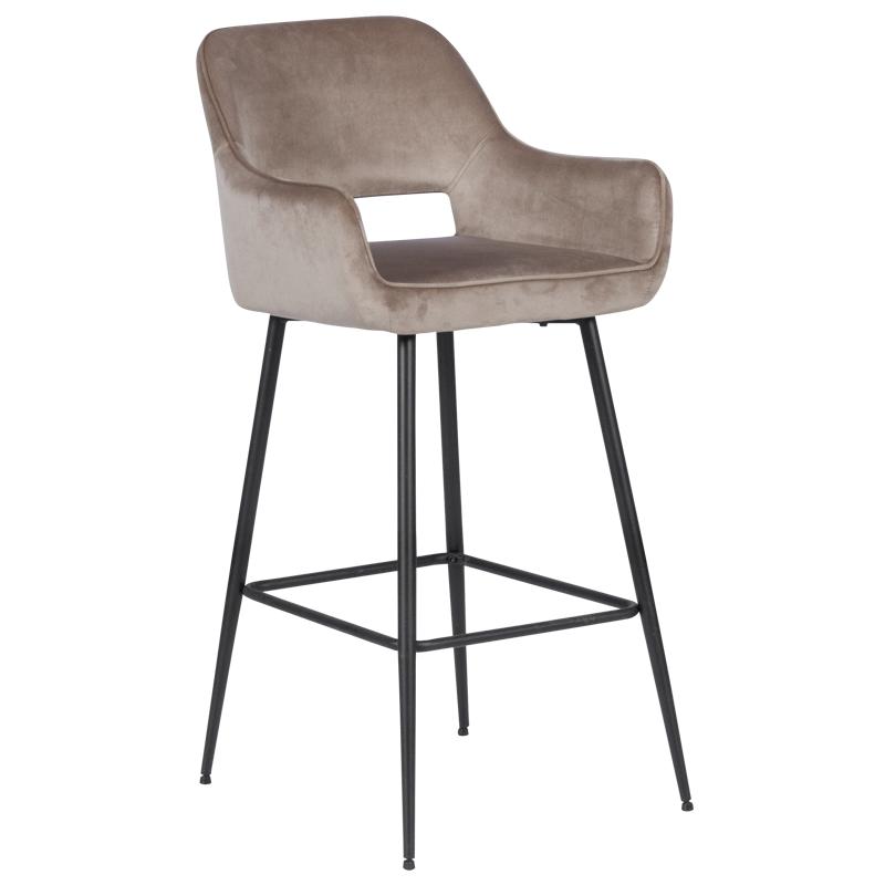 Бар стол СИМЕОНА e стилен и удобен бар стол с подлакътници.  Той е изработен от луксозна, нежна дамаска и здрави крака от прахово боядисан метал.