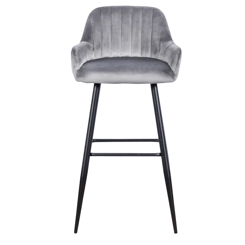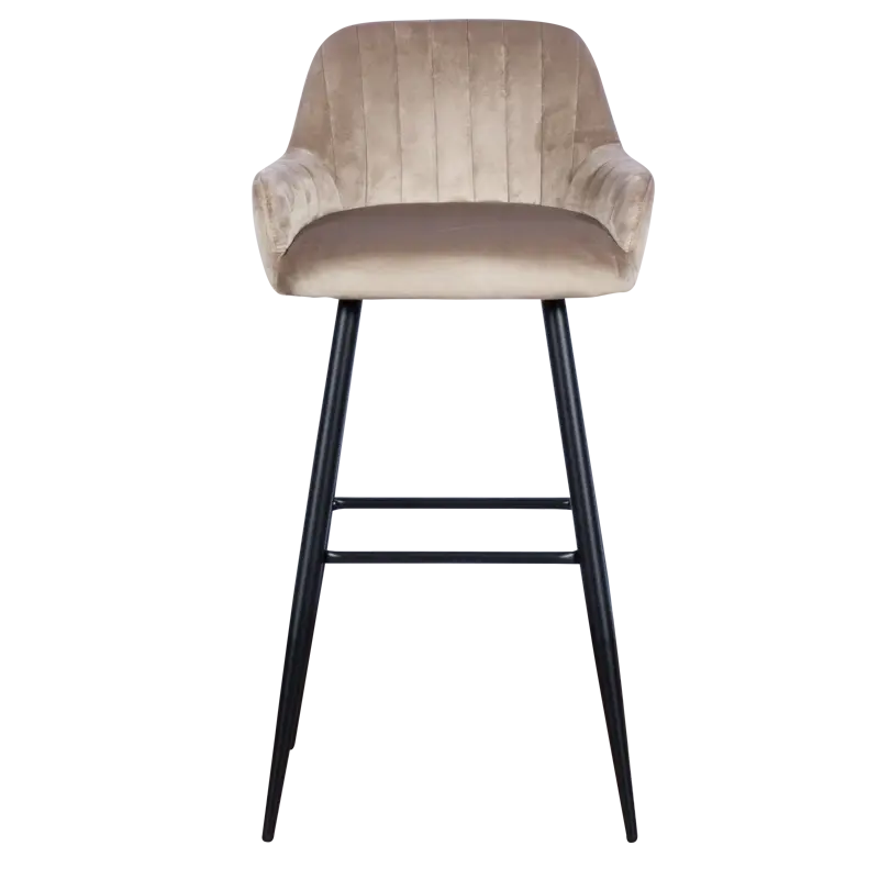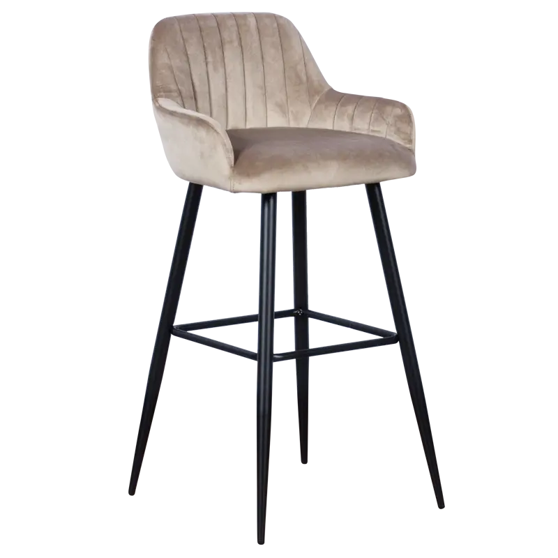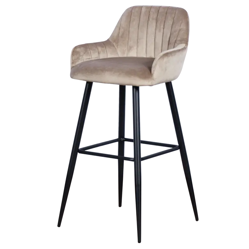 Бар столът ВЕРОНИКА е модел със стилен дизайн и стабилна конструкция с крака от прахово боядисан метал. Неговата седалка, наподобяваща кресло, гарантира удобство и създава усещане за лукс. За нейната изработка е използвана висококачествена и нежна на допир дамаска.
