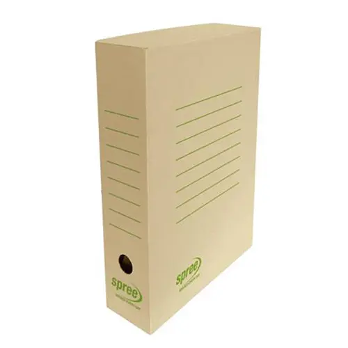 Архивната кутия 100 мм Spree е удобна за употреба в офиса и дома, като разполага със специално предназначено място за надписване.