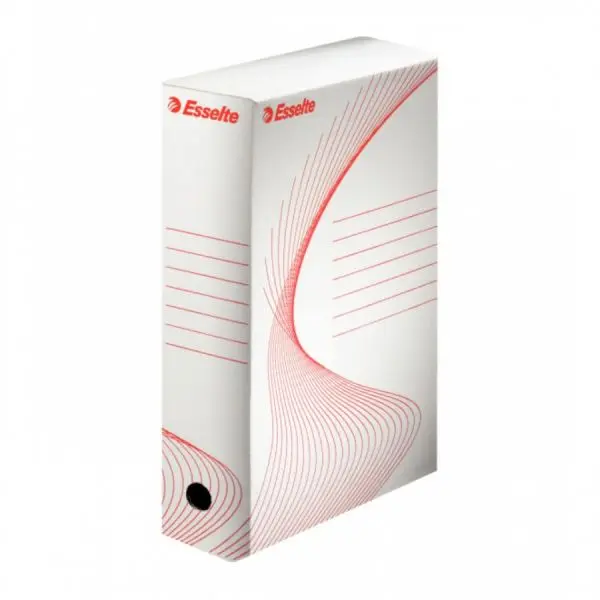 Архивната кутия 100 мм Esselte е удобна за употреба в офиса и дома, като разполага със специално предназначено място за надписване.