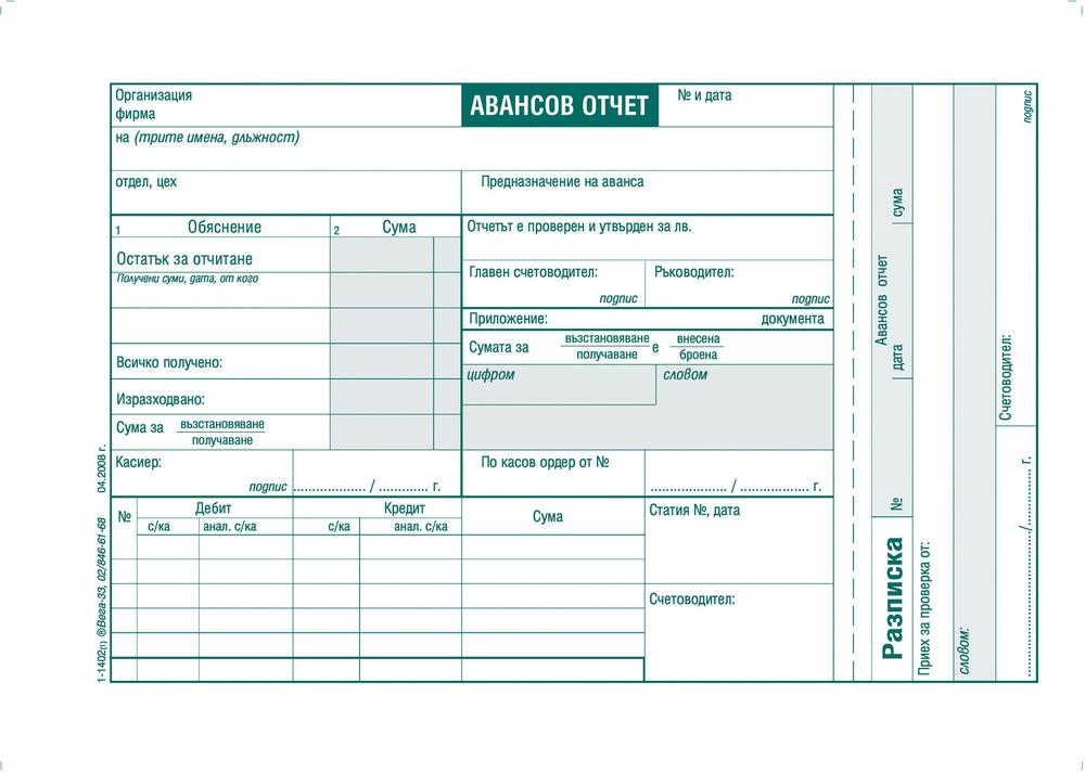 - Авансов отчет от вестникарска хартия с разписка