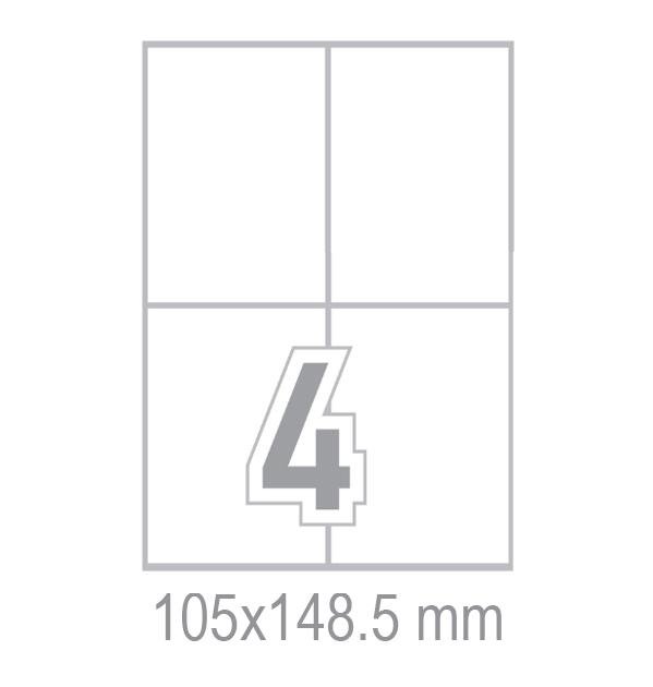 Самозалепващи етикети 105x148.5 4 бр. са произведени от смозалепваща хартия за многофункционална употреба. Подходящи са за работа с копирни машини, лазерни и мастиленоструйни принтери.