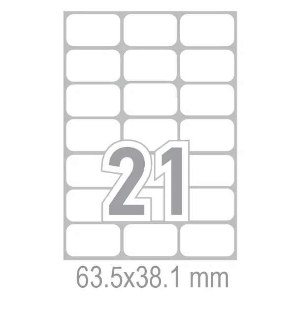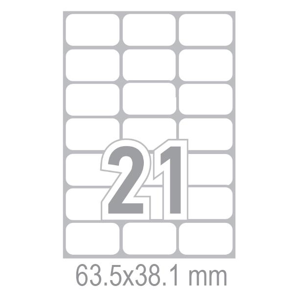 Самозалепващи етикети 63.5x38.1 21 бр. са произведени от смозалепваща хартия за многофункционална употреба. Подходящи са за работа с копирни машини, лазерни и мастиленоструйни принтери.
