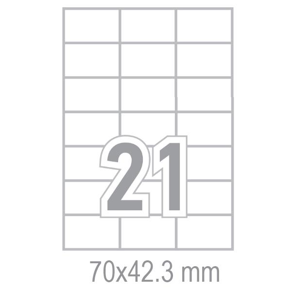 Самозалепващи етикети 70x42.3 21 бр. са произведени от смозалепваща хартия за многофункционална употреба. Подходящи са за работа с копирни машини, лазерни и мастиленоструйни принтери.