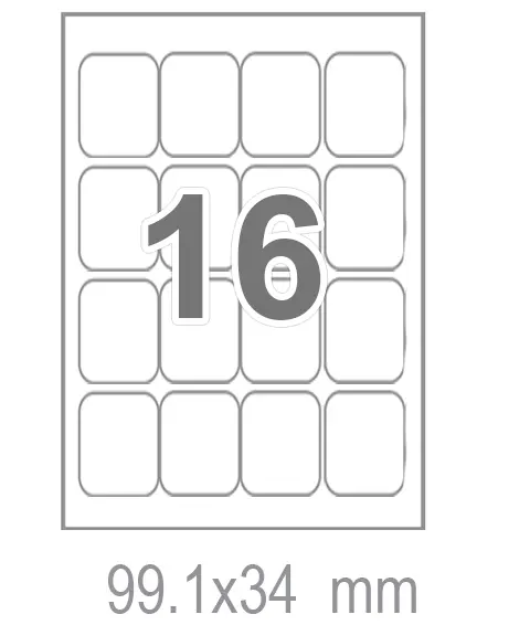 Самозалепващи етикети 99.1x34 16 бр. са произведени от самозалепваща хартия за многофункционална употреба. Подходящи са за работа с копирни машини, лазерни и мастиленоструйни принтери.