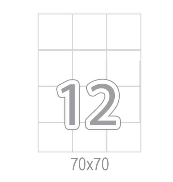Самозалепващи етикети 70x70 12 бр. са произведени от самозалепваща хартия за многофункционална употреба. Подходящи са за работа с копирни машини, лазерни и мастиленоструйни принтери.