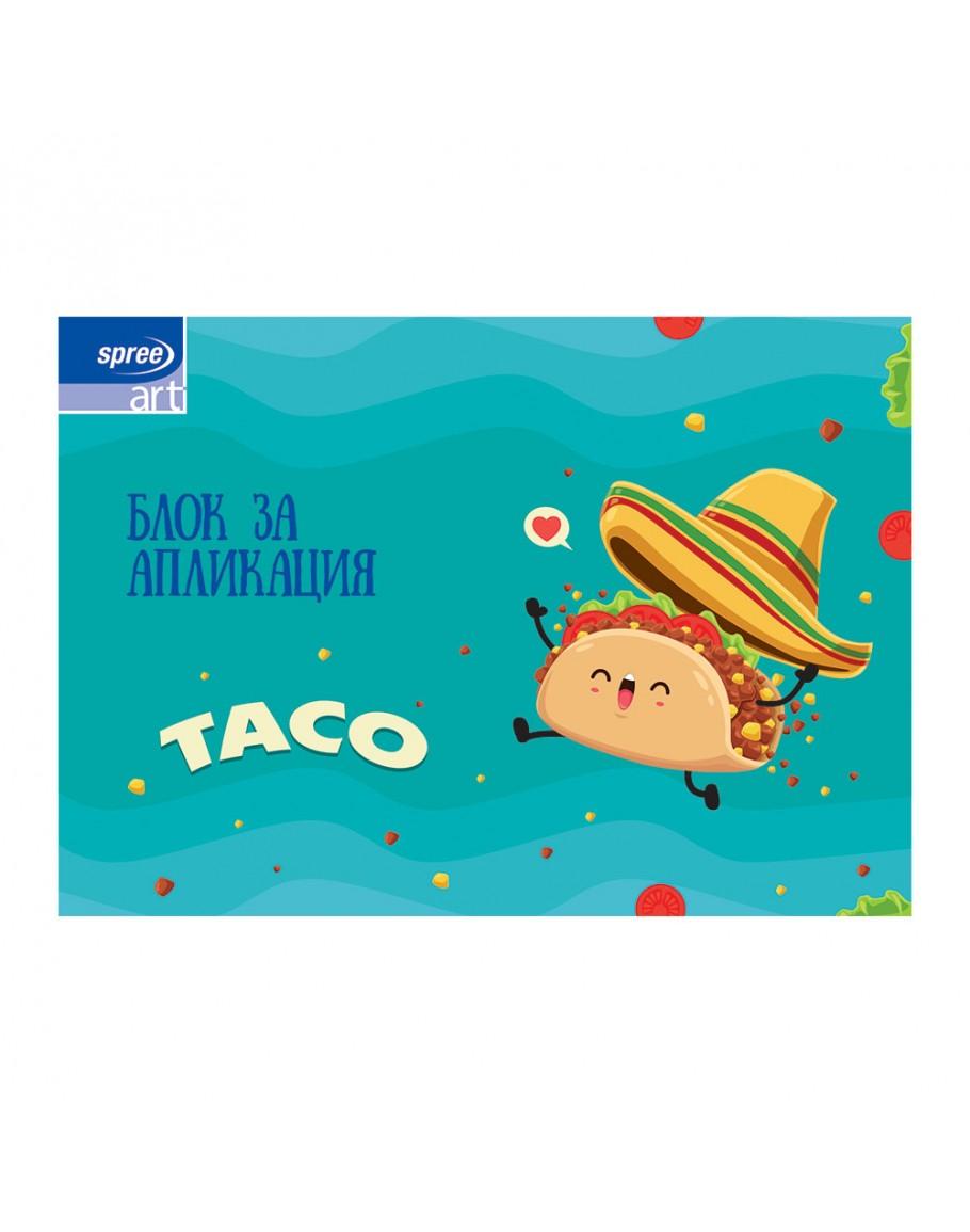 Блокът за апликация Spree представлява самозалепваща се хартия в десет цвята. Подходящ е за всякакъв тип изобразително изкуство.