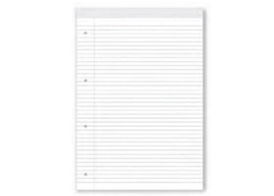 Белият блокнот с перфорация А4 40 л е линиран блокнот, подходящ за водене на записки и поставяне в класьор за документи.