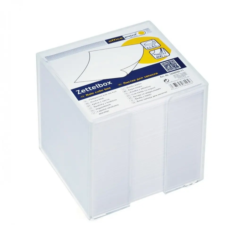 Бяло кубче 85х85 мм 800 л е бяло кубче с PVC поставка. Подходящо е за отбелязване на страници на документи, а също така и за записване на важна информация.