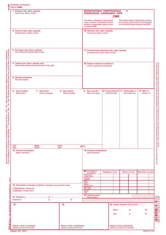 - Международна товарителница (ЧМР, CMR), образец Modele IRU 1976