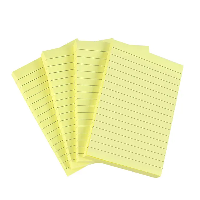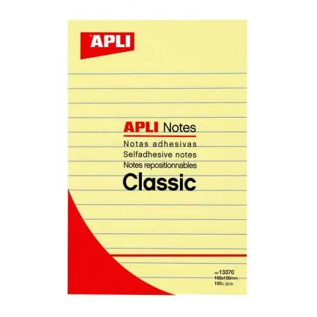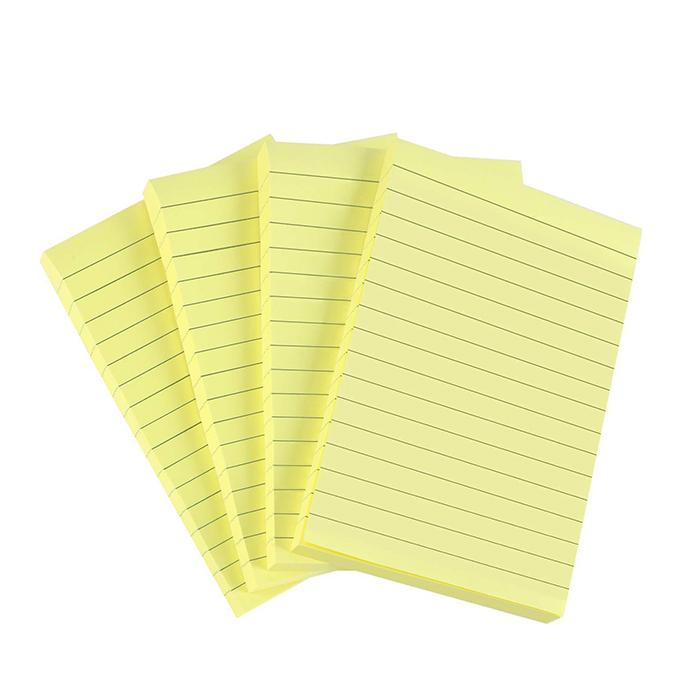Самозалепващите листчета 150х100мм на редове жълт пастел разполагат с 15 реда, като размерът им позволява писане на дълги съобщения, бележки, програми.