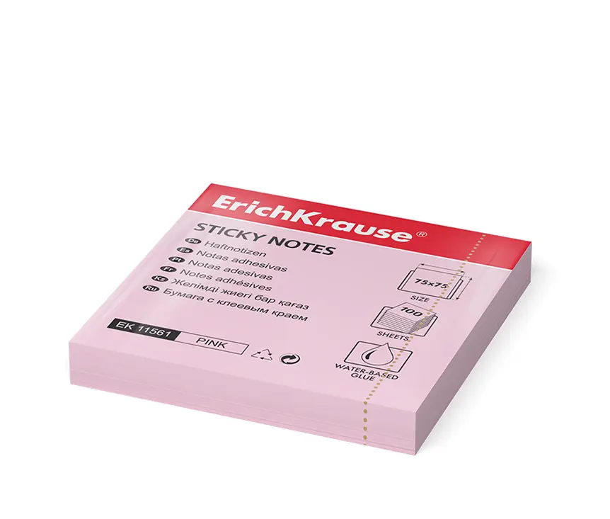 Самозалепващи листчета 75х75мм розов пастел е самозалепващо цветно кубче. Подходящи са за многократно залепване и отлепване при отбелязване на страници на документи, а също така и за записване на важна информация.