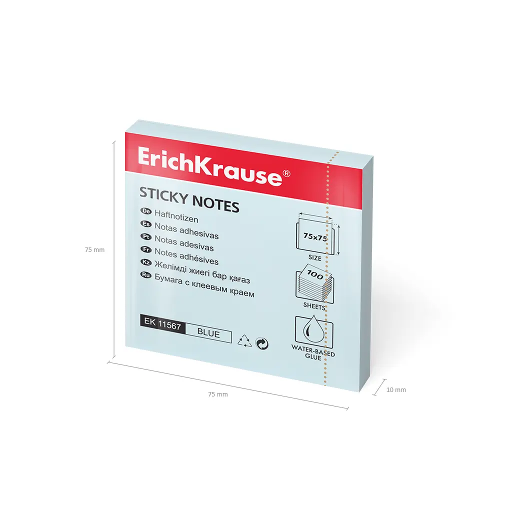 Самозалепващи листчета 75х75мм син пастел е самозалепващо цветно кубче. Подходящи са за многократно залепване и отлепване при отбелязване на страници на документи, а също така и за записване на важна информация.