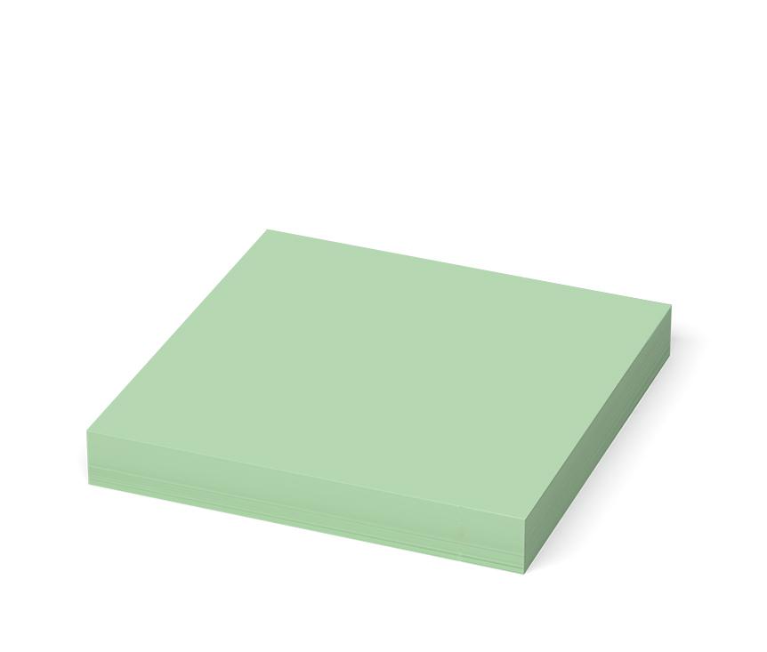 Самозалепващи листчета 75х75мм зелен пастел е самозалепващо цветно кубче. Подходящи са за многократно залепване и отлепване при отбелязване на страници на документи, а също така и за записване на важна информация.