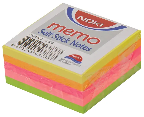 Самозалепващи листчета 50х50мм неон 250л е самозалепващо цветно кубче. Подходящи са за многократно залепване и отлепване при отбелязване на страници на документи, а също така и за записване на важна информация.