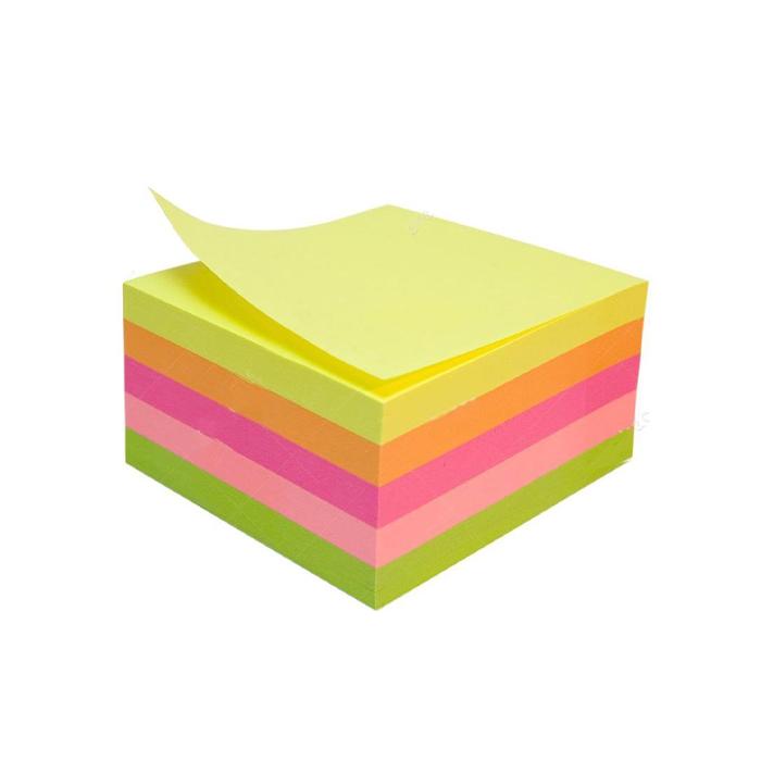 Самозалепващи листчета 50х50мм неон 250л е самозалепващо цветно кубче. Подходящи са за многократно залепване и отлепване при отбелязване на страници на документи, а също така и за записване на важна информация.