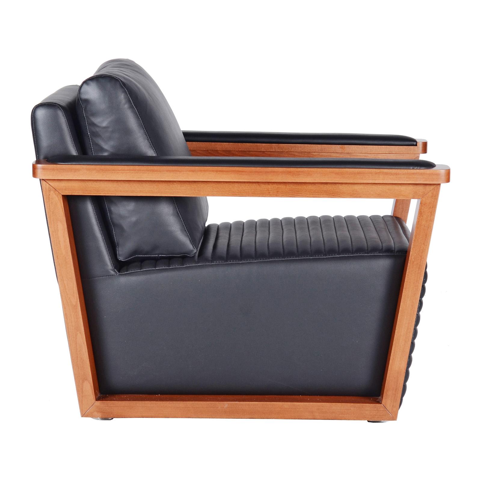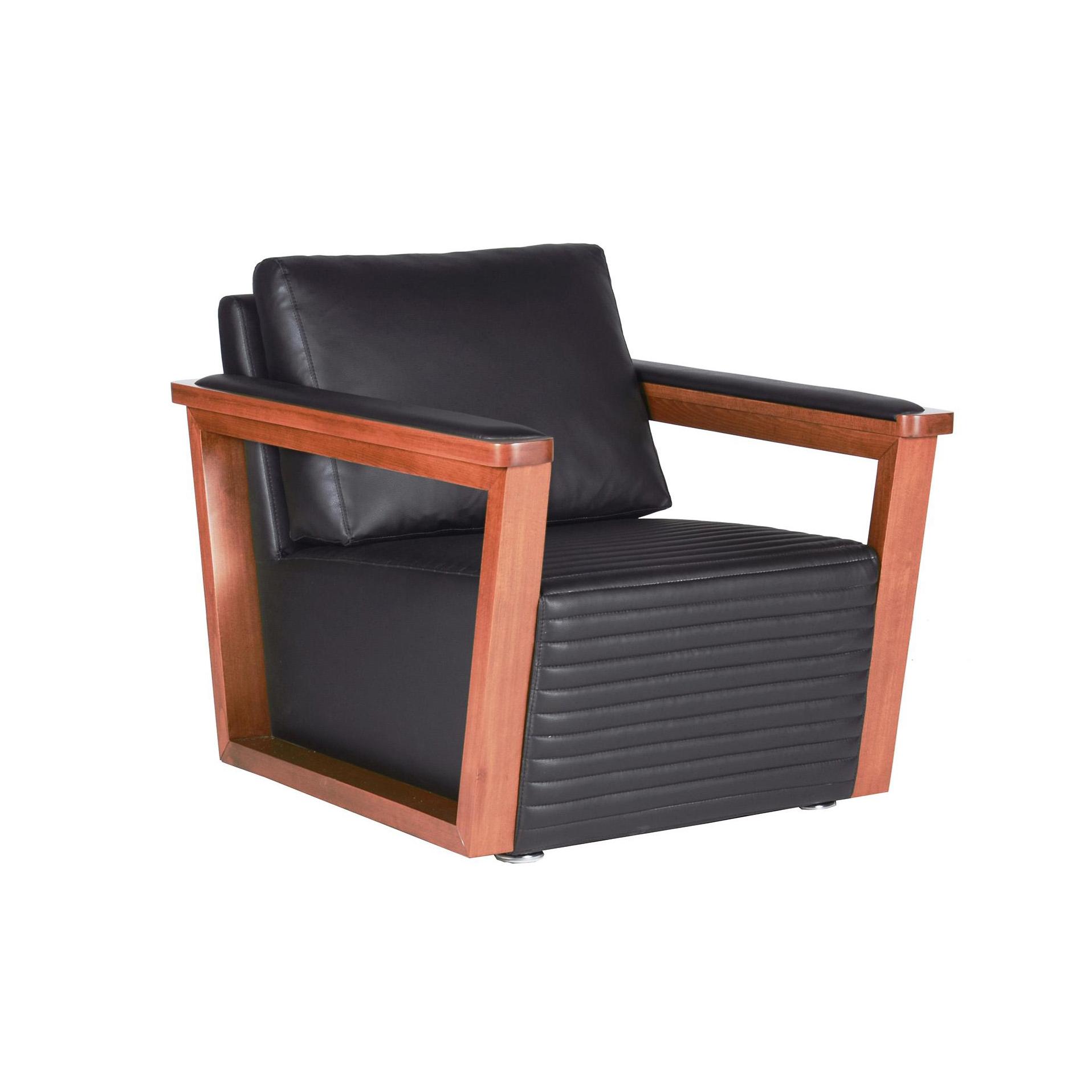 Диван едноместен ДРАМА NORMA 01 със седалка декорирана с хоризонтални линии, дървени подлакътници с меки кожени падове.