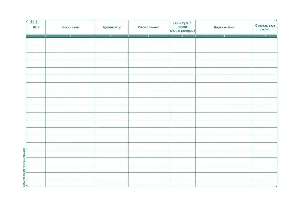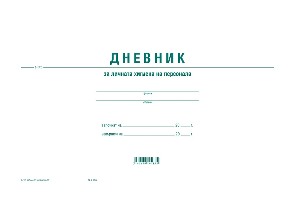- Дневник за лична хигиена на персонала от вестникарска хартия с мека подвърция