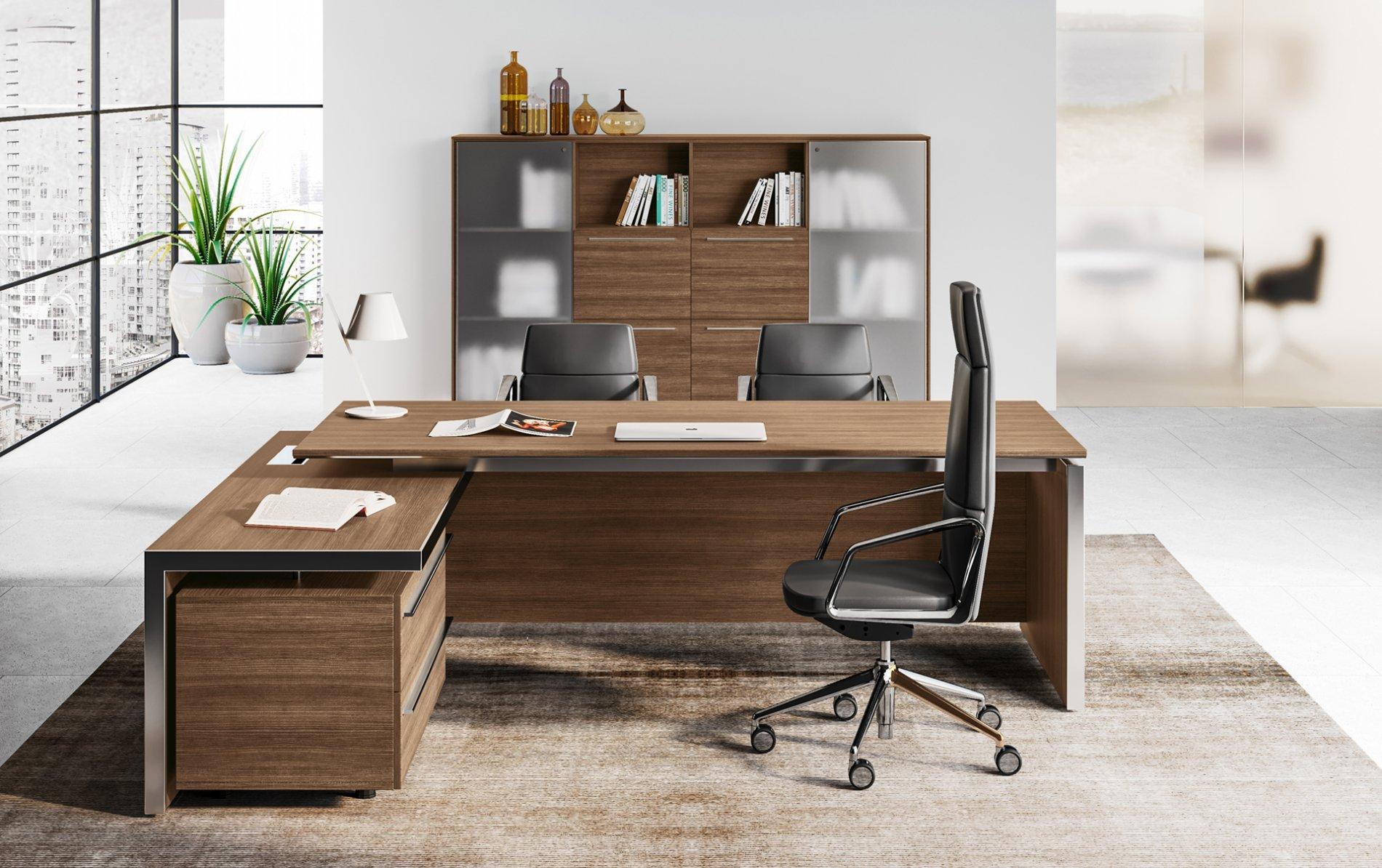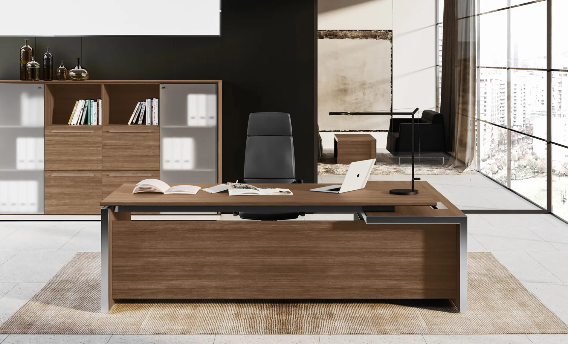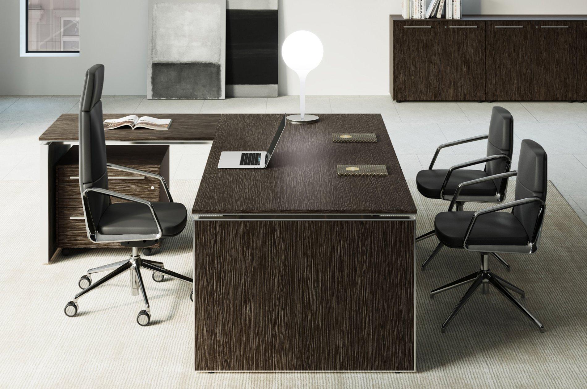 Директорски кабинет E.O.S е създаден от италианските дизайнери Giacobone и Roj, които умело са имплементирали геометрични фигури и масивност в облика на кабинета. Масите от серията E.O.S могат да бъдат изработени от закалено стъкло или ПДЧ с меламиново покритие. Шкафовете са оборудвани с механизъм за тихо затваряне и са придружени от централно заключване. Също така кабинетът разполага и с помощно бюро и приставка, които формират надеждна Г-образна структура. Бюрата притежават и скрита от полезрението система за окабеляване, която ще ви даде възможност да зареждате мобилните си устройства и лаптопи.