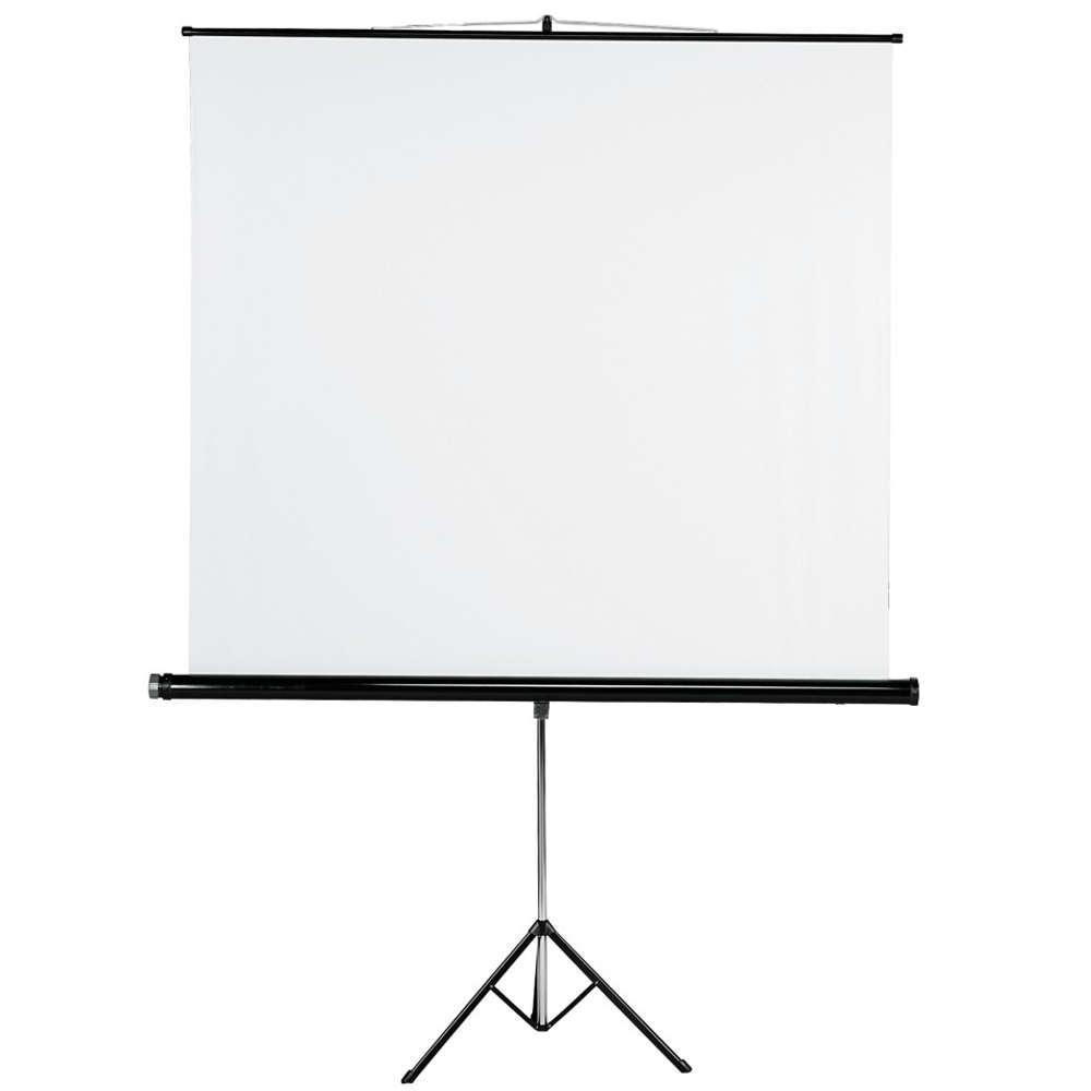 Екранът на стойка 180х180 см е екран за проектор на стойка трипод. Той представлява нискобюджетен олекотен вариант, подходящ за предна прожекция само в затъмнени помещения. Екранът е оборудван с изцяло бяло PVC прожекционно платно с превъзходна отразителна способност. С черен телескопичен статив с регулируема височина и капачки на крачетата против приплъзване. Снабден е с удобна за носене пластмасова дръжка. Подходящ е за бизнес, учебни и развлекателни приложения.