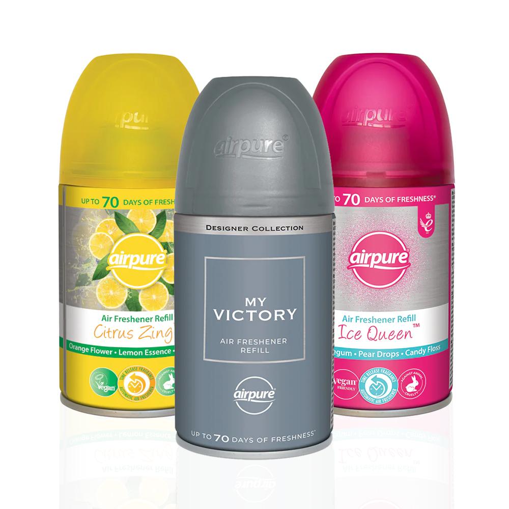 Насладете се на дълготрайна свежест с пълнителите за автоматични ароматизатори Airpure. С обем от 250 мл, всеки пълнител осигурява до 70 дни ароматизиране в зависимост от избраната настройка на уреда. Съвместим с повечето стандартни автоматични диспенсъри, включително Airpure Automatic Machine. Подходящ за дома, офиса, банята и всяко помещение, което искате да изпълните с приятен аромат.