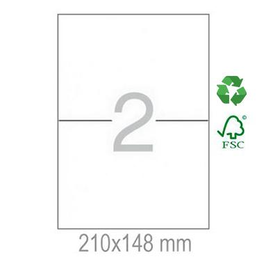 Рециклирани етикети 210x148 2 бр. са самозалепващи етикети, произведени от рециклирана хартия. Съвместими са за работа с копирни машини, лазерни и мастиленоструйни принтери.