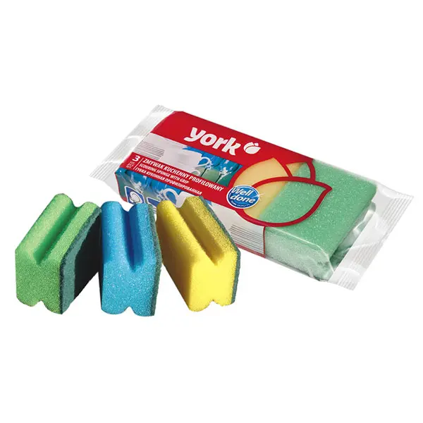 Гъба домакинска YORK с улей е удобна и ефективна кухненска гъба с ергономична форма за лесен захват и максимален комфорт при миене. Идеални за почистване на съдове, тенджери, тигани и кухненски повърхности.