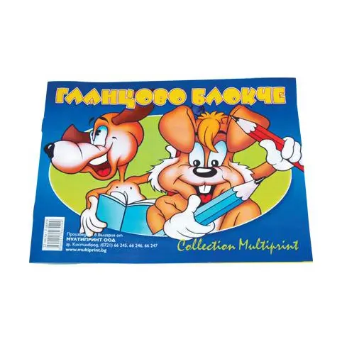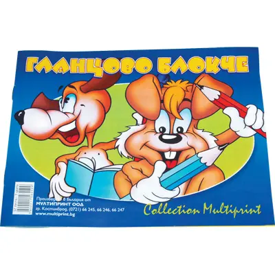 Гланцовото блокче притежава десет листа цветна хартия за апликация подходяща за всякакъв тип изобразително изкуство.