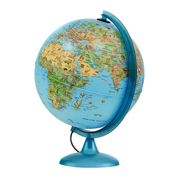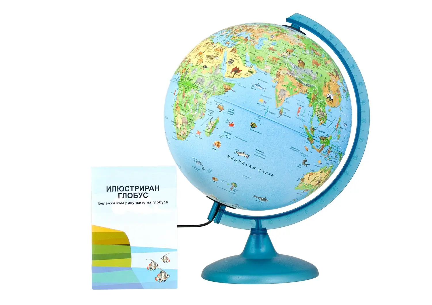 Глобусът изобразява релефна карта на Земята с нейните животински видове, природни особености и човешки творения. Книжката с илюстрации към глобуса дава богата информация и включва бележки към изобразените животни, растения и забележителности.
