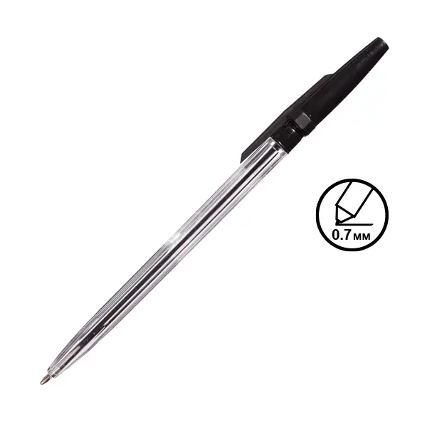 Химикалка еднократна черна има прозрачно тяло, даващо възможност за следене нивото на мастилото. Цветът на капачката отговаря на цвета на мастилото.