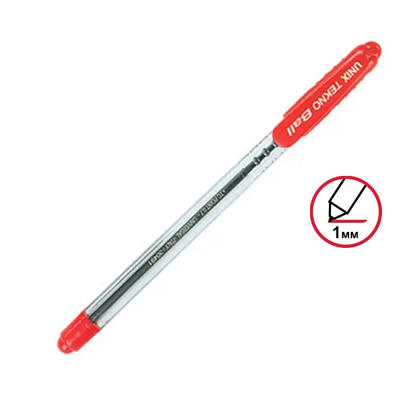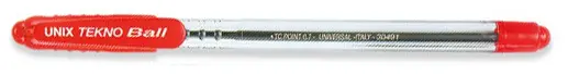 Химикалка Tekno Ball червена има прозрачно тяло, даващо възможност за следене нивото на мастилото. Цветът на капачката отговаря на цвета на мастилото.