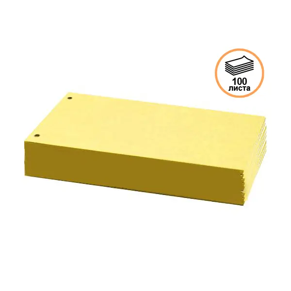 Хоризонталният разделител 100 бр жълт е произведен от 100% рециклиран цветен картон и разполага с два отвора за класиране в папка или класьор.