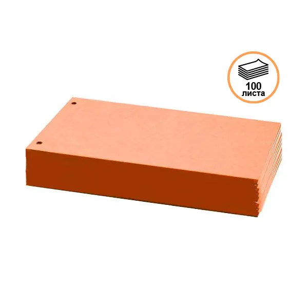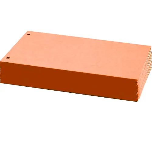 Хоризонталният разделител 100 бр оранжев е произведен от 100% рециклиран цветен картон и разполага с два отвора за класиране в папка или класьор.