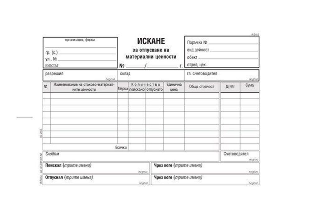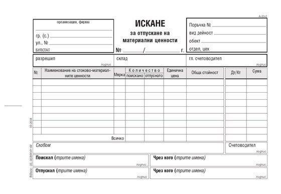 - Искане за отпускане на материални ценности (МЦ и материални запаси, МЗ)