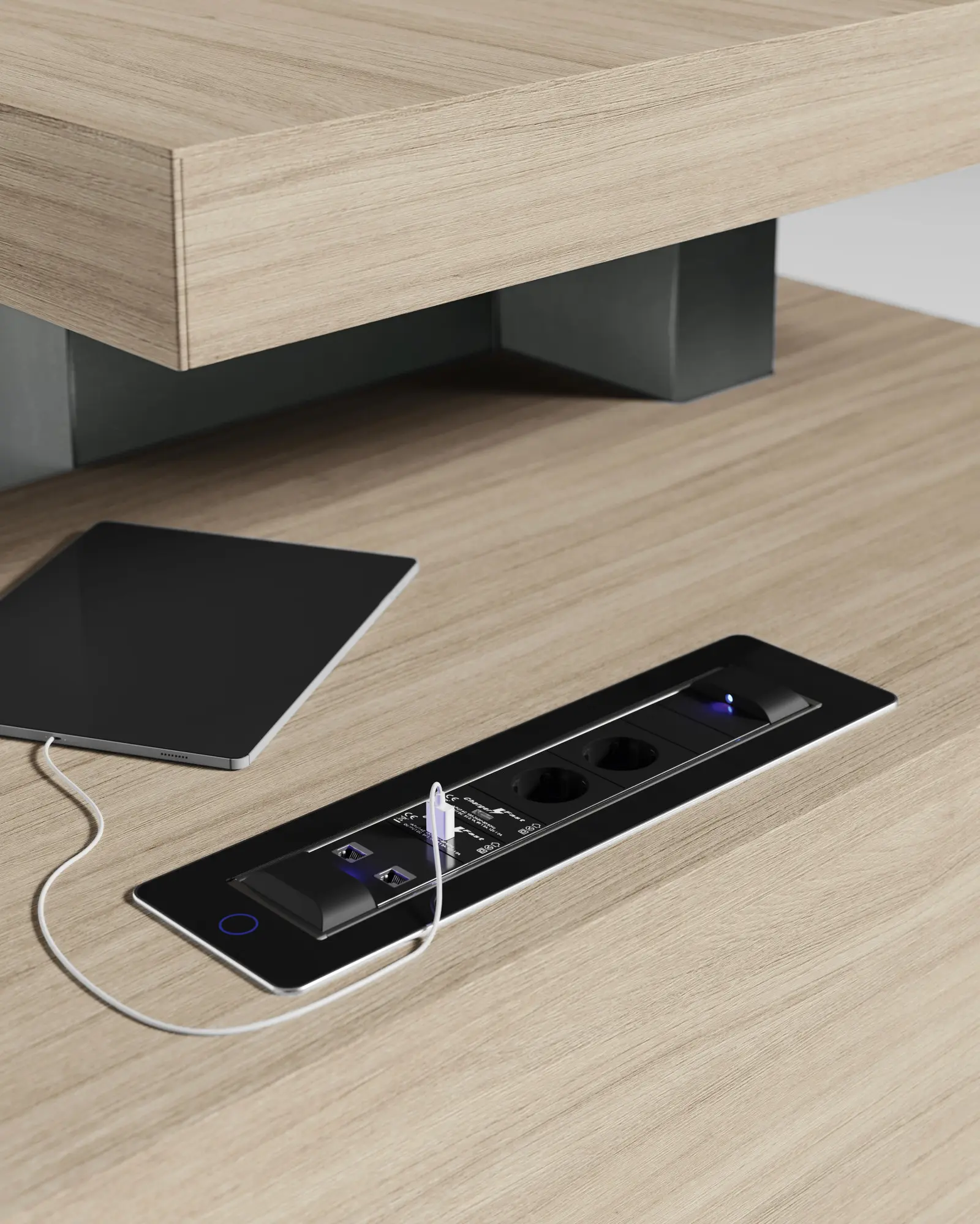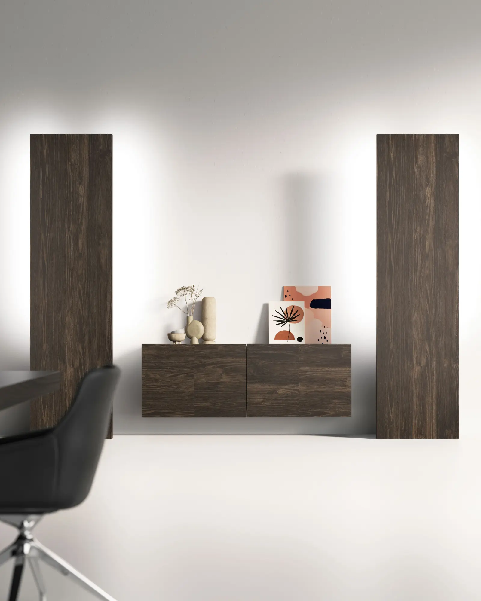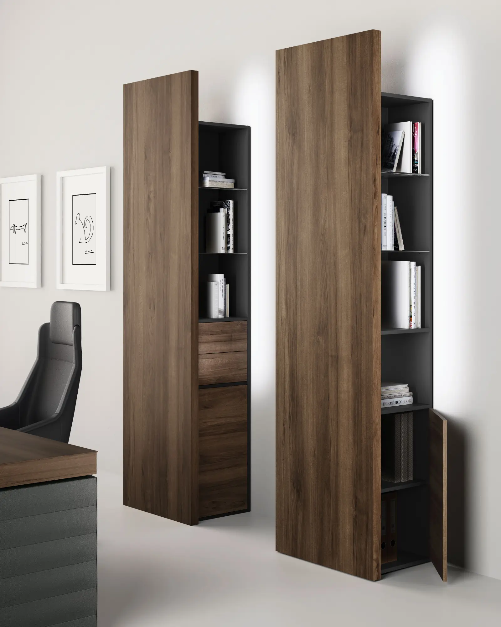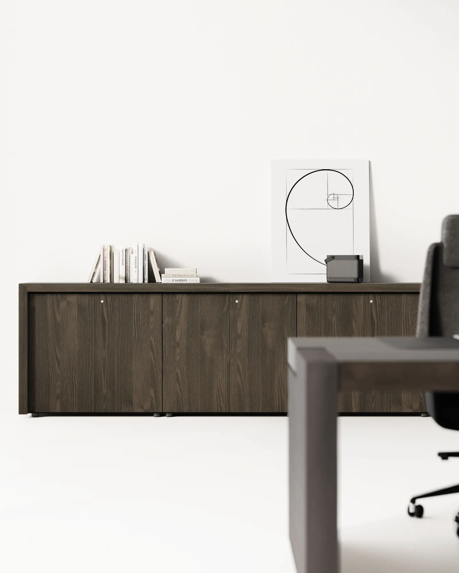 Директорския кабинет JERA съчетава изчистени и строги линии със съвременни материали, като създава усещане за уют и комфорт на работното място. Солидното и масивно бюро в комбинация със страничните и задните панели, тапицирани с еко кожа, предразполагат за продуктивност и удоволствие. Това дизайнерско решение се дължи на факта, че комбинацията от дърво и кожа има естествен характер. Предлага се в два варианта- с и без помощен модул. Плотът на бюрото е изработен от висококачествени МДФ панели, които са лесни за поддръжка и имат луксозно покритие. Работното бюро, страните и задният панел на помощния плот съставляват цялостна Т-образна структура. Иновативен елемент на кабинета е оборудването Top Access,което представлява панел за скриване на кабели и контакти. Дело е на екипа италиански дизайнери Orlandini Design.