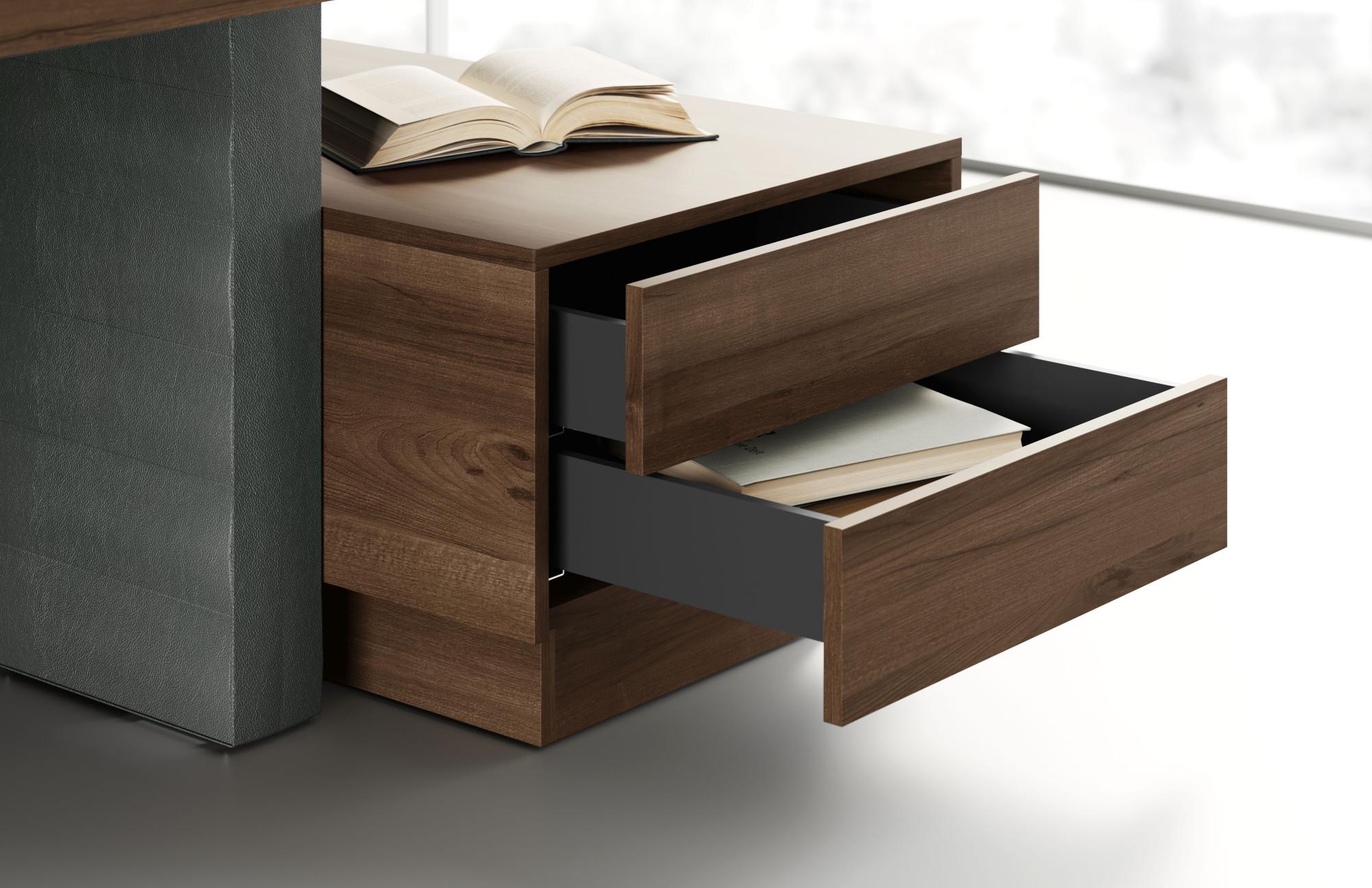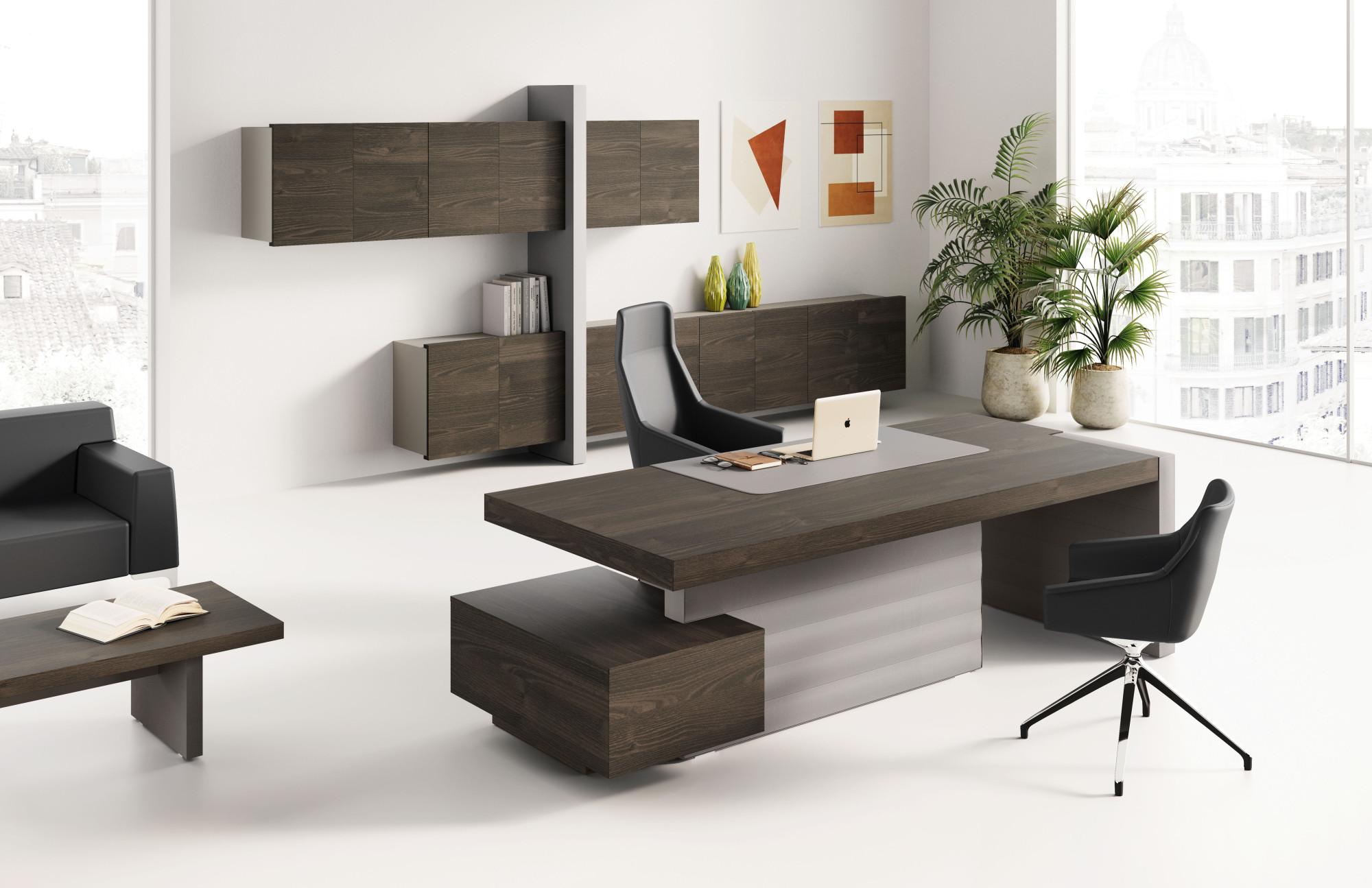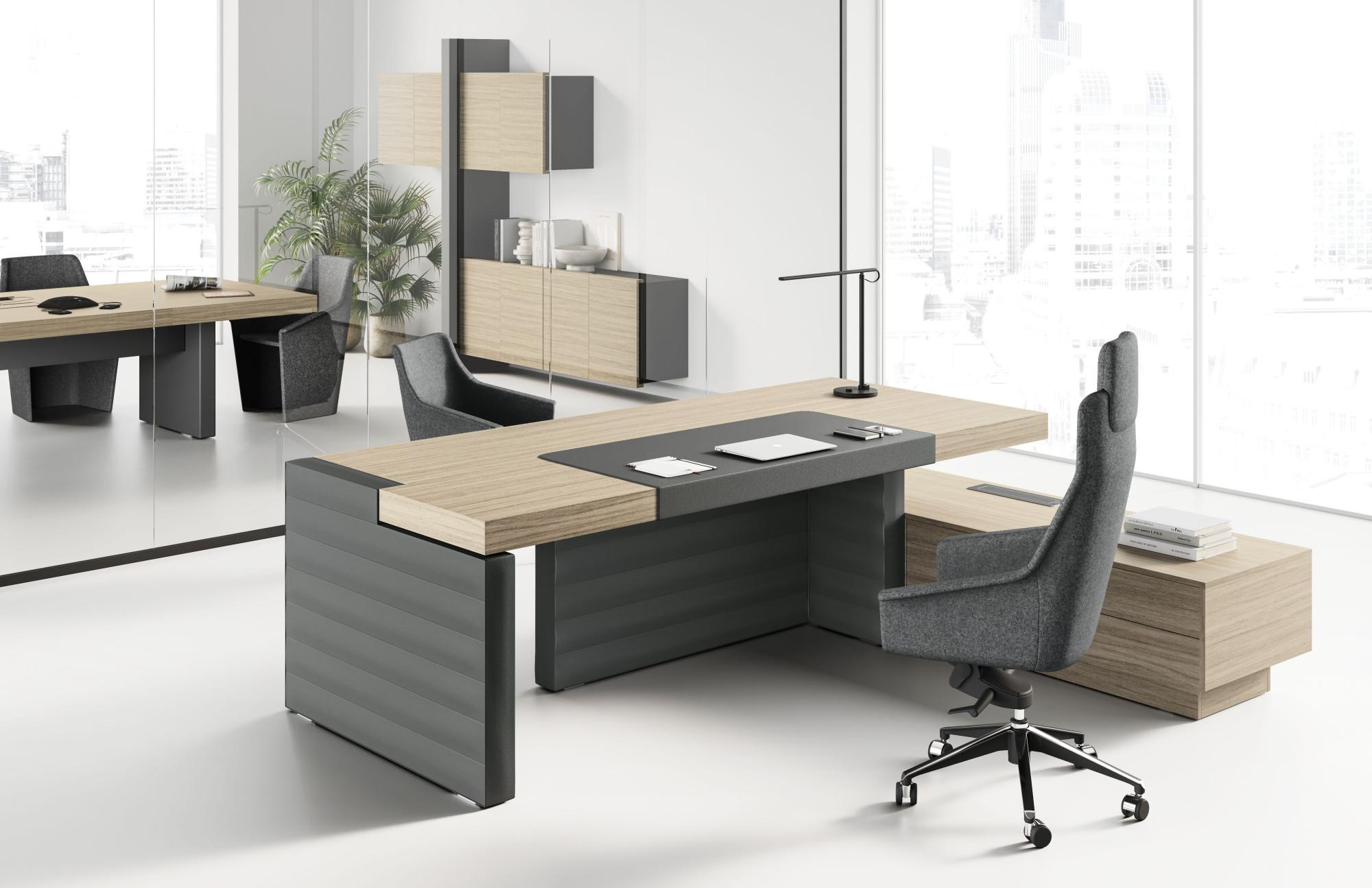 Директорския кабинет JERA съчетава изчистени и строги линии със съвременни материали, като създава усещане за уют и комфорт на работното място. Солидното и масивно бюро в комбинация със страничните и задните панели, тапицирани с еко кожа, предразполагат за продуктивност и удоволствие. Това дизайнерско решение се дължи на факта, че комбинацията от дърво и кожа има естествен характер. Предлага се в два варианта- с и без помощен модул. Плотът на бюрото е изработен от висококачествени МДФ панели, които са лесни за поддръжка и имат луксозно покритие. Работното бюро, страните и задният панел на помощния плот съставляват цялостна Т-образна структура. Иновативен елемент на кабинета е оборудването Top Access,което представлява панел за скриване на кабели и контакти. Дело е на екипа италиански дизайнери Orlandini Design.