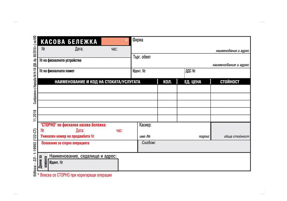 - Касова бележка за сторно по фискални касови бонове