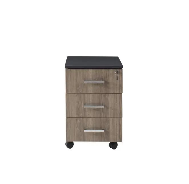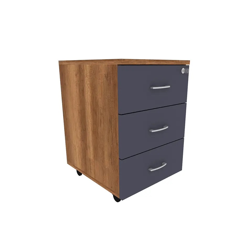 Контейнерът за офис бюро е изработен от ПДЧ материал с меламиново покритие с дебелина на плоскостта от 18 мм. Разполага с три чекмеджета със заключване и е подходящ е за съхранение на документи и лични вещи.